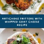 Crispy and flavorful Artichoke Fritters served with a smooth and tangy whipped goat cheese topping. These golden-brown fritters are a perfect appetizer or snack, combining tender artichoke hearts with Parmesan and herbs, fried to perfection and complemented by a creamy goat cheese dip with a hint of lemon and honey.