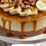 This Banana Caramel Nut Cheesecake combines a buttery graham cracker crust with a rich and creamy cream cheese filling, topped with fresh banana slices, luscious caramel sauce, and crunchy nuts. Perfectly baked to a slight jiggle in the center, this dessert delivers a harmonious balance of sweet, creamy, and nutty flavors, ideal for special occasions or indulgent treats.