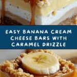 Delightfully creamy Banana Cream Cheese Bars with a crunchy graham cracker crust, layered with sweet banana slices and a luscious caramel drizzle. These bars are perfect for a sweet dessert or a special snack, combining classic flavors in a simple bake.