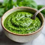 This Basil Pesto Recipe pairs wonderfully with simple pasta dishes, especially spaghetti, linguine, or orecchiette. It’s equally fantastic as a spread for crusty bread or a topping on grilled chicken, fish, or roasted vegetables. The bright flavors of the pesto make even the simplest sides shine with Italian charm.