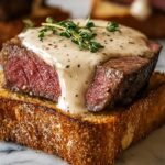 Beef Tenderloin Crostini with Parmesan Cream Sauce is an elegant appetizer featuring tender slices of beef atop crisp baguette crostini, finished with a rich and creamy Parmesan sauce. Perfect for entertaining, these bite-sized treats combine the savory flavors of perfectly seared beef with a luxurious, garlicky cheese sauce.