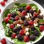 This vibrant Berry Spinach Salad combines fresh baby spinach, sweet strawberries, and juicy blackberries with crunchy toasted pecans and crispy prosciutto, all topped with tangy crumbled feta cheese. A homemade balsamic glaze adds a luscious, syrupy sweetness that perfectly balances the flavors in this easy, elegant 30-minute salad, ideal for light lunches or entertaining.
