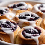 These Blueberry Cinnamon Rolls combine the classic soft and fluffy cinnamon-sugar swirls with bursts of fresh blueberries for a delightful twist. Soft dough is enriched with vanilla and brown sugar cinnamon filling, baked to golden perfection, and finished with a smooth vanilla glaze. Perfect for breakfast, brunch, or a special treat.