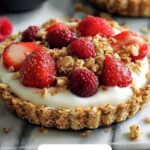This Breakfast Fruit Tart with Granola Crust is a wholesome and delicious morning treat featuring a crunchy granola base baked to golden perfection, filled with creamy yogurt, and topped with a vibrant assortment of fresh mixed fruits. Perfectly balanced with natural sweetness from honey and a hint of warm cinnamon, this tart offers a refreshing combination of textures and flavors to start your day.