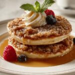 Delight in these fluffy Brown Sugar & Cinnamon Streusel Pancakes topped with a sweet crumbly streusel and a smooth vanilla glaze. Perfect for a cozy breakfast or weekend brunch, these pancakes combine comforting cinnamon flavors with a buttery streusel crunch and a light powdered sugar glaze for an irresistible treat.