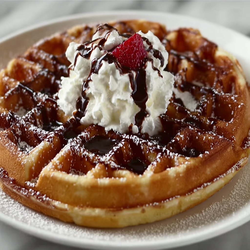 These waffles pair beautifully with breakfast staples like crispy bacon or sausage for a savory balance. Fresh fruit or yogurt on the side keeps things light and refreshing, and a drizzle of maple syrup or chocolate sauce makes it feel like a dessert-worthy treat.