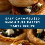 You can turn your Caramelized Onion Tarts Recipe into bite-sized hors d’oeuvres by cutting smaller squares or rounds, perfect for cocktail parties. Alternatively, arrange the tarts on a rustic wooden board with garnishing herbs to create an inviting centerpiece that’s as visually stunning as it is delicious.