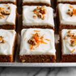 Cut your carrot cake bars into 9 generous squares and get ready to savor every bite of this delightful treat alongside your favorite drink or just as they are!