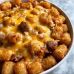 This Cheesy Hot Dog Tater Tot Casserole is a comforting and family-friendly dish that combines savory sliced hot dogs with crispy tater tots, all baked to perfection in a creamy mushroom soup base and topped with melted cheddar cheese. It’s a quick and easy one-dish meal perfect for busy weeknights or casual gatherings.