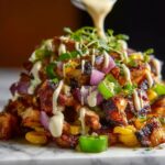 Chicken Al Pastor Loaded Fries combine tender, marinated chicken with crispy fries, melted cheese, and fresh toppings. This flavorful fusion dish offers a perfect balance of smoky, spicy, and tangy flavors, making it a delicious and satisfying meal or snack that’s easy to prepare.