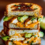 This Chicken Avocado Melt Sandwich is a delicious and healthy option for a quick lunch or dinner. It features tender cooked chicken mixed with creamy mashed avocado, Greek yogurt or mayonnaise, and flavorful seasonings, all melted together with your choice of cheese on toasted whole grain or sourdough bread. Optional fresh spinach or arugula adds a touch of green and a nutrient boost. This sandwich is grilled to golden perfection in a skillet, delivering a satisfying, melty meal that’s packed with protein and good fats.
