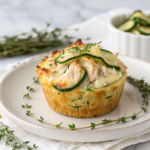 For a brunch gathering, arrange the Chicken, Cheese, and Zucchini Muffins Recipe on a platter with small bowls of sour cream or a tangy yogurt dip. You could also slice them in half and use them as mini sandwich buns with a smear of avocado or a sliver of smoked salmon for an unexpected treat.