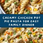 This comforting Chicken Pot Pie Pasta recipe combines tender shredded chicken, wide egg noodles, and a creamy vegetable sauce infused with herbs for a delightful twist on classic chicken pot pie flavors. It’s a hearty, one-pot meal perfect for family dinners, blending familiar ingredients in a creamy, savory sauce with Parmesan and fresh parsley.