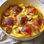 Serve each portion with a golden chicken thigh, a sausage link, and a generous helping of vegetables. Ladle the luscious cooking liquid over the top to soak into the meat and potatoes. Don’t forget to add crusty bread or a side of pasta to scoop up every last bit of that incredible sauce!
