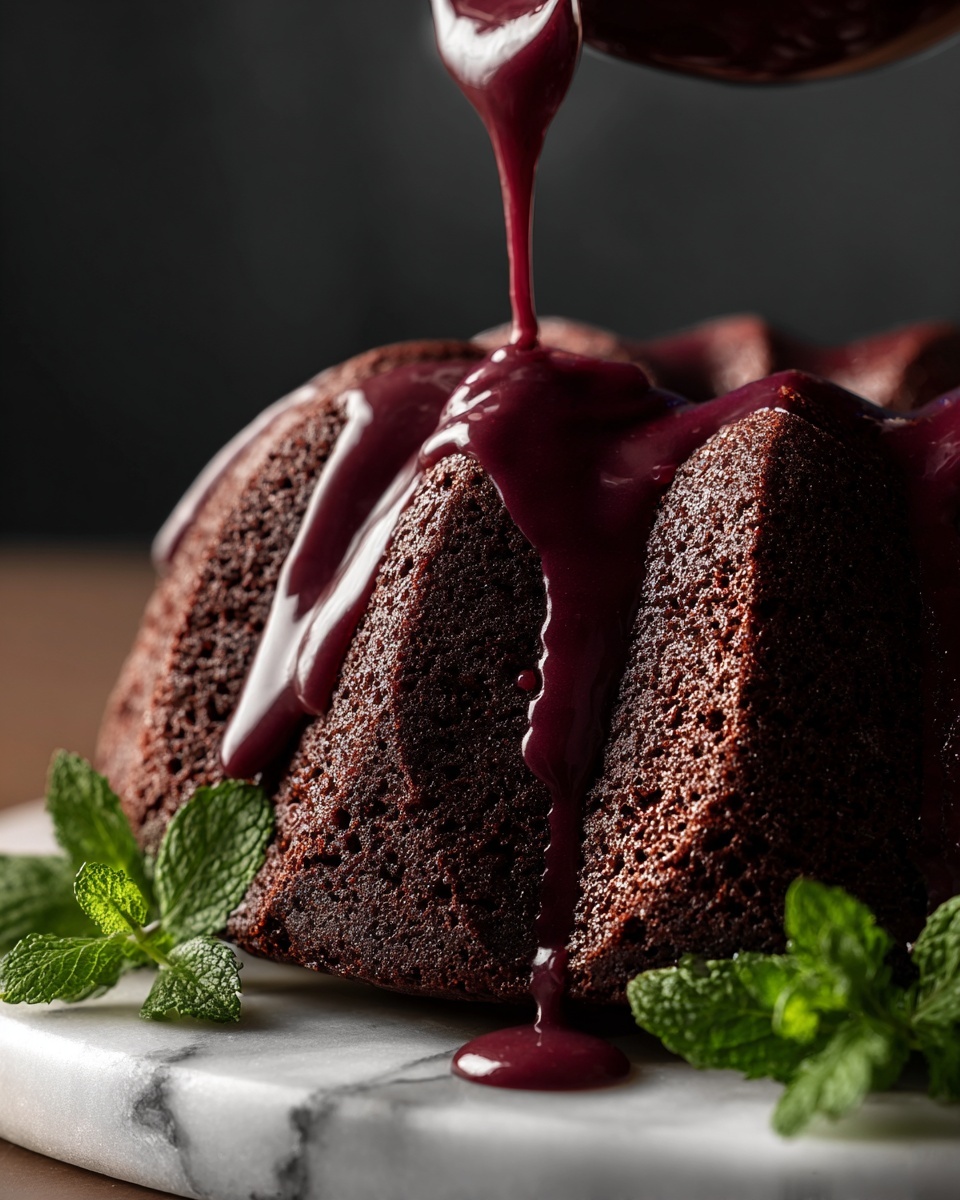 How to Serve Chocolate Bundt Cake with Hibiscus Cream Cheese Glaze Recipe