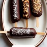 Once your bananas are frozen solid and your chocolate is silky smooth, it’s time for the fun part. Remove your banana pops from the freezer and one by one, dunk them into the melted chocolate, letting the excess drip off like a pro. While the chocolate is still wet, sprinkle your favorite toppings—think chopped peanuts, shredded coconut, granola, cacao nibs, and a pinch of flaky salt. Each topping adds a unique character to every bite, exploding with flavors and textures.