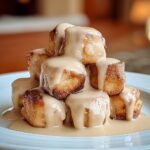 Cinnamon Roll French Toast Bites combine the sweet, gooey goodness of cinnamon rolls with the comforting texture of French toast. This easy breakfast recipe involves dipping cinnamon roll pieces in a spiced egg mixture and pan-frying them to golden perfection. Served with icing, powdered sugar, or maple syrup, these bite-sized treats make for a delightful morning meal or snack.