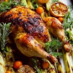 This Clementine Roast Chicken with Fennel and Honey is a flavorful and aromatic dish featuring juicy roasted chicken infused with the sweetness of honey and bright citrusy notes from fresh clementines. Paired with caramelized fennel and onions, this recipe offers a perfect balance of savory and sweet, making it an impressive yet easy-to-make meal for any occasion.