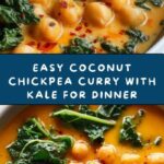 A flavorful and creamy Coconut Curry Chickpeas recipe that combines tender chickpeas simmered in a rich coconut milk and tomato sauce, infused with aromatic spices, garlic, ginger, and fresh kale. Perfect for a comforting, vegetarian meal ready in just 35 minutes.