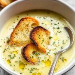 This soup pairs beautifully with rustic country bread, a light salad, or a simple cheese platter. The subtle garlic flavor in the soup is hearty enough to stand on its own but also harmonizes perfectly alongside fresh, crisp sides that don’t overpower its gentle nuances.