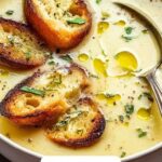 This Country French Garlic Soup is a smooth, flavorful, and comforting dish that highlights the natural sweetness of garlic. Slowly simmered with fresh sage and enriched with a delicate emulsion of egg and olive oil, this soup delivers a creamy texture without cream. Perfect as an appetizer or a light meal, it offers rustic French flavors with a simple preparation that can be made vegetarian by using vegetable broth.