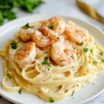 This creamy garlic shrimp pasta recipe combines succulent, seasoned shrimp with a rich and velvety Parmesan cream sauce, tossed with perfectly cooked linguine pasta. Ready in just 30 minutes, it’s a delicious and impressive meal perfect for weeknight dinners or entertaining guests.