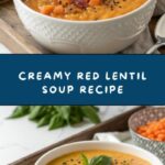 A comforting and nutritious Creamy Red Lentil Soup made with fragrant spices, tender red lentils, tomatoes, and fresh greens. This hearty vegetarian soup comes together easily on the stovetop, perfect for a healthy weeknight meal or cozy lunch.
