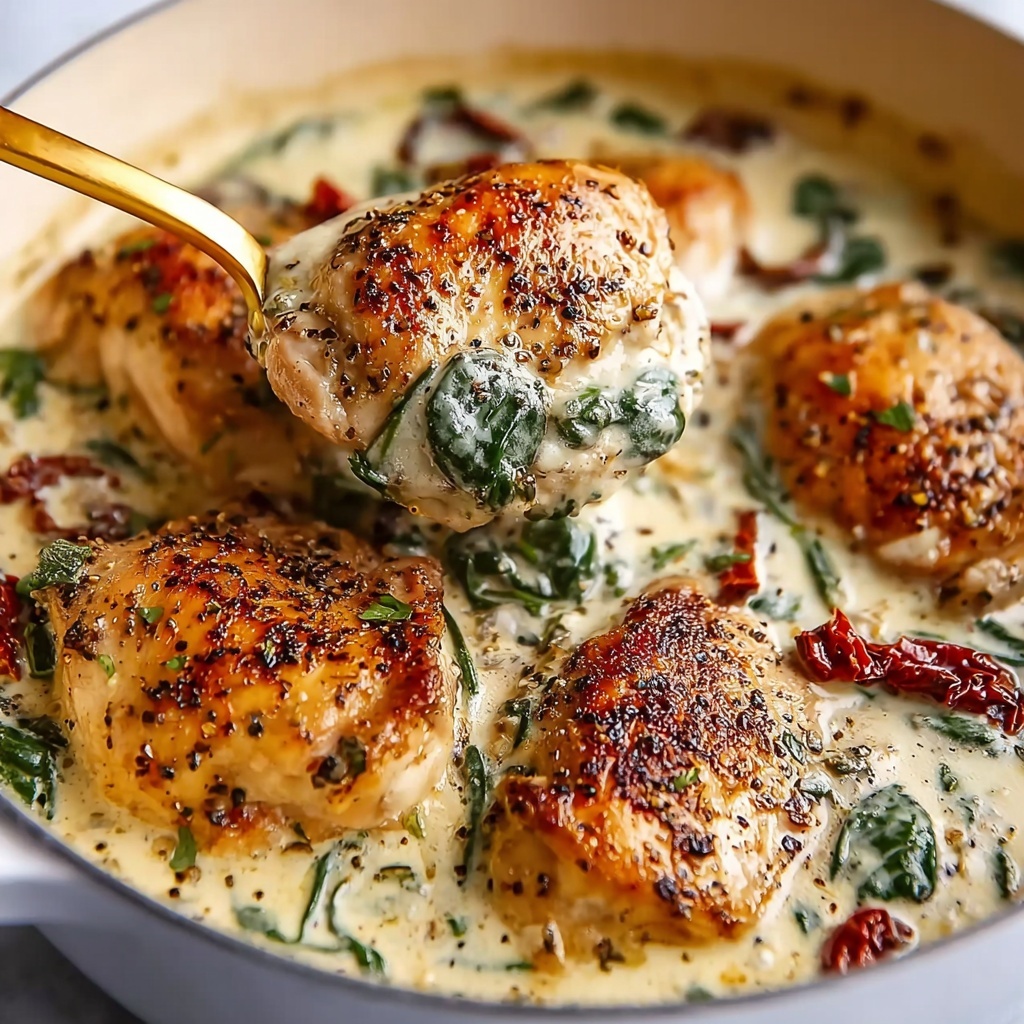 Incorporate the baby spinach into the sauce and cook just until it wilts, adding a fresh pop of green and subtle earthiness. Return the seared chicken cutlets to the skillet, nestling them gently into the sauce so they soak up all that creamy goodness.