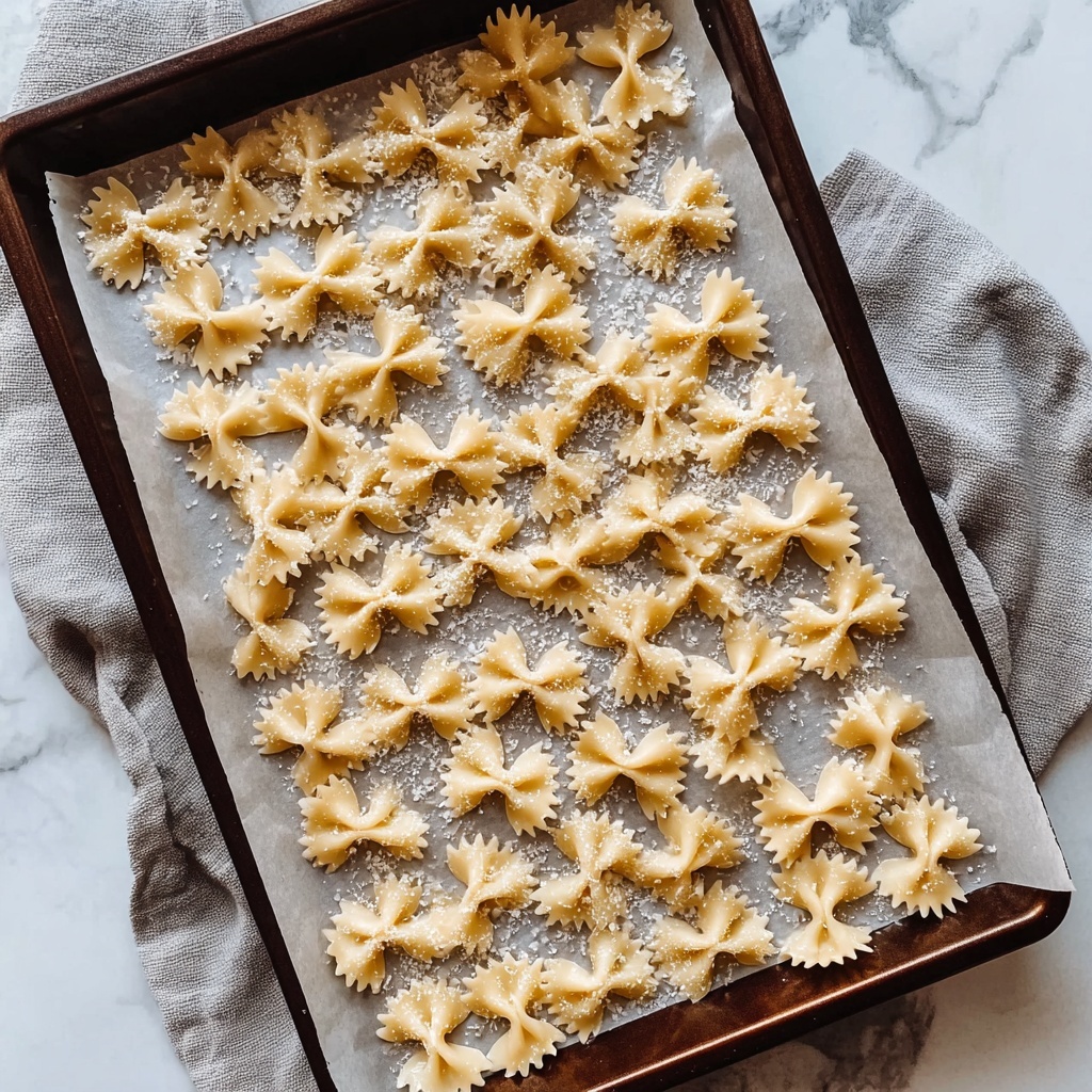 Preheat your oven to 400°F (200°C) and line a baking sheet with parchment paper. Spread the coated pasta in a single layer on the baking sheet—this step is crucial because it helps the pieces bake evenly and get that perfect crunch without sticking together.