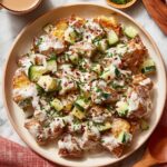 Crispy Smashed Gochujang Potato Salad is a delightful fusion dish combining tender, crispy smashed baby yellow potatoes with a creamy, spicy-sweet gochujang dressing. The potatoes are boiled until just tender, smashed, then brushed with olive oil and baked to golden perfection. Tossed with fresh Persian cucumbers, a vibrant gochujang-infused yogurt dressing, and garnished with chives, this salad offers a perfect balance of textures and flavors ideal for gatherings or a unique side dish.