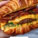 If you’re ready to treat yourself and your loved ones to a burger experience that’s miles above the ordinary, this Croissant Cheeseburgers Recipe is your ticket. With its perfect marriage of flaky pastry, melty cheese, and juicy beef, it’s a crowd-pleaser that’s easy to whip up and impossible to forget. Give it a try and watch these scrumptious sandwiches become your new favorite indulgence.