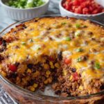 - Assemble the Casserole: Spread a layer of crushed tortilla chips evenly on the bottom of the prepared casserole dish. Add half of the beef and bean mixture on top, followed by half of the shredded cheddar cheese. Repeat with another layer of crushed chips, the remaining beef and bean mixture, and finish with the remaining cheddar cheese on top.