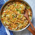 This Egg Roll Stir Fry is a quick and flavorful dish combining ground pork, fresh ginger, garlic, and a vibrant mix of Asian seasonings with crunchy coleslaw mix. Ready in just 25 minutes, it’s served over rice and topped with green onions and crispy wonton strips for an easy weeknight meal packed with bold flavors and textures.