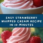 This Fluffy Strawberry Bliss Whip is a light and airy dessert topping made by whipping cold heavy cream with powdered sugar and folding in fresh chopped strawberries. Perfect as a quick and delightful treat, it can also be tinted with red gel icing color for a vibrant pink twist.