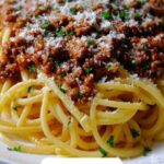 If you’re hosting, try serving the pasta in shallow bowls to showcase the glossy sauce and beef crumbles. Garnish with edible flowers or microgreens for a stunning dinner party presentation. Leftover pasta transforms beautifully into a baked spaghetti casserole topped with mozzarella and Parmesan for a whole new meal.