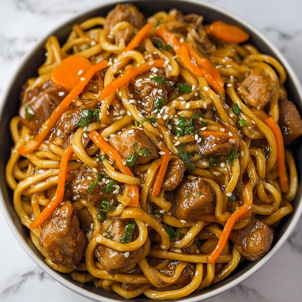 A flavorful and easy Garlic Chicken Lo Mein recipe featuring tender chicken, crisp vegetables, and a savory garlic sauce tossed with perfectly cooked lo mein noodles. Ready in just 30 minutes, this dish is a satisfying weeknight meal inspired by classic Chinese takeout.