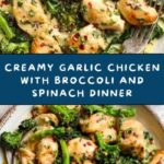 A quick and delicious Garlic Chicken with Broccoli and Spinach recipe that combines tender chicken, fresh vegetables, and creamy cheeses to create a comforting low-carb meal perfect for weeknight dinners.