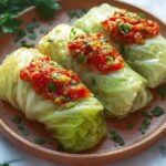 For a festive twist, layer the cabbage rolls in a baking dish with extra sauce between layers for a beautiful, rustic casserole look. You can also serve individual rolls on a platter with sauces drizzled artistically for an elegant presentation that’s sure to impress family and guests alike.