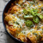 These Green Chile and Extra Cheese Chilaquiles are a deliciously cheesy and flavorful Mexican breakfast or brunch dish featuring crispy tortilla chips simmered in a tangy green chile salsa and topped with melted Monterey Jack and cheddar cheeses. Garnished with fresh cilantro, sour cream, and optional toppings like avocado and fried eggs, this easy skillet meal delivers a satisfying and comforting start to your day.