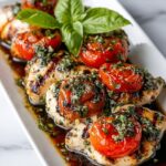 This Grilled Chicken Caprese recipe features juicy, seasoned chicken breasts grilled to perfection and topped with a fresh Caprese salad of cherry tomatoes, mozzarella, and basil, all finished with a delicious balsamic glaze. It’s a vibrant and healthy meal ideal for a quick weeknight dinner or a summer barbecue.