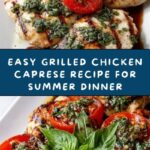 For a fun and casual twist, serve the grilled chicken sliced thin and arranged on a long platter with the Caprese salad heaped down the center for guests to help themselves. Alternatively, build it as an open-faced sandwich on toasted focaccia or ciabatta bread with basil pesto beneath the chicken. No matter how you present it, this Grilled Chicken Caprese Recipe is always a feast for the eyes and the palate.