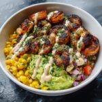 This Grilled Shrimp Bowl with Avocado Corn Salsa & Creamy Sauce is a vibrant and flavorful dish perfect for a quick and nutritious meal. Featuring succulent grilled shrimp seasoned with smoky spices, fresh corn salsa bursting with zesty lime and cilantro, and a luscious creamy garlic sauce, this bowl combines a balance of textures and bright, fresh flavors in just 25 minutes.