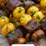 Pair these kabobs with a crisp green salad to offset the rich meat and potatoes, or go for grilled vegetables like asparagus, zucchini, or bell peppers to keep the theme going. Creamy garlic mashed potatoes or a cool cucumber and yogurt dip also work wonders alongside these skewers, creating a balanced plate full of flavor and variety.