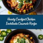 This Hearty Crockpot Chicken Enchilada Casserole is a delicious, slow-cooked meal combining tender shredded chicken with bold enchilada flavors, black beans, corn, and melted cheeses. Perfect for an easy family dinner, it layers classic Southwestern ingredients in a crockpot for a comforting, cheesy casserole.