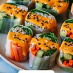 For a visually stunning plate, garnish your platter of veggie rolls with extra sesame seeds, thinly sliced green onions, or finely chopped peanuts. A few sprigs of fresh herbs like cilantro or mint scattered around give a fragrant finishing touch that excites both the eye and the palate.