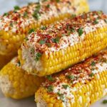 This Homemade Mexican Street Corn recipe offers a deliciously creamy and tangy twist on classic grilled corn, enhanced with a zesty chili-lime mayonnaise sauce and topped with crumbly Mexican cheese and fresh parsley. Perfect as a flavorful side dish for summer barbecues or any festive meal.