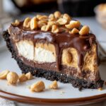 - Garnish and Serve: Just before serving, top the pie with whipped cream, extra hot fudge if desired, and sprinkle with chopped peanut butter cups or peanuts for added texture and flavor. Serve the pie chilled.