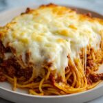 - Top with Remaining Mixture: Layer the remaining spaghetti mixture over the cheese, then finish by sprinkling the remaining mozzarella and Parmesan cheeses.