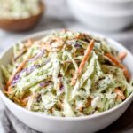 This slaw pairs beautifully with Mexican-inspired dishes like tacos, grilled chicken, or fish. It’s also fantastic alongside burgers, pulled pork sandwiches, or even as a crisp contrast to spicy grilled meats. Its cool creaminess helps balance out richer or smoky flavors perfectly.