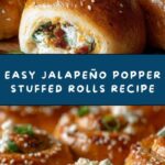 Delicious Jalapeño Popper Stuffed Rolls featuring a creamy and cheesy filling mixed with spicy jalapeños and savory bacon, all wrapped in soft pizza dough and baked to golden perfection. Perfect as a party appetizer or snack.
